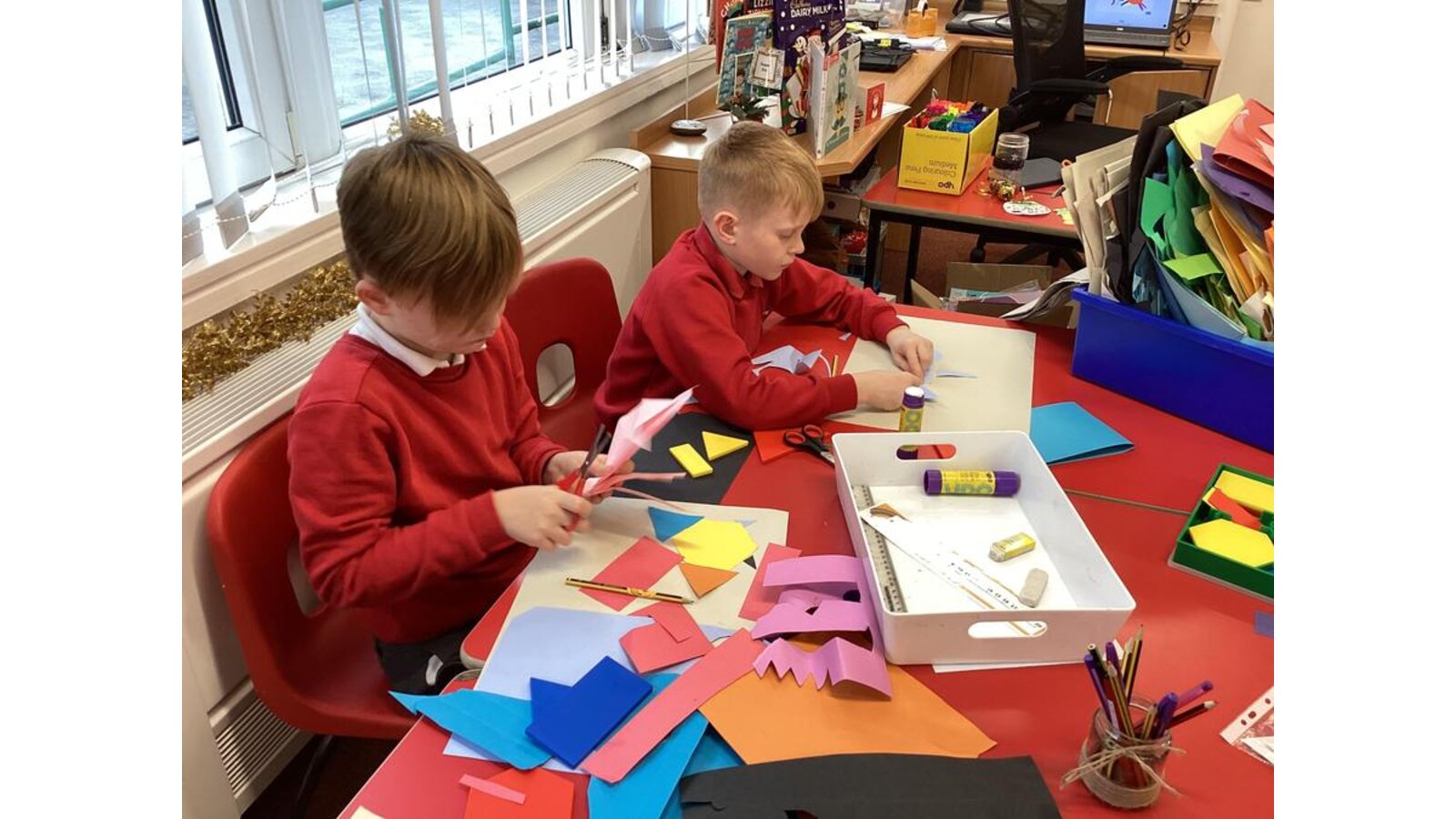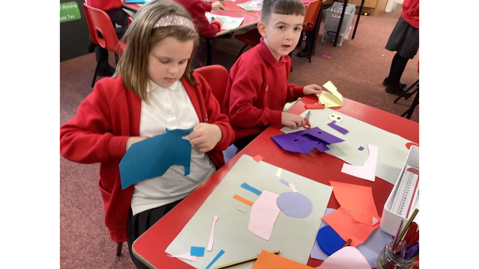 27 November 2023 Class Two We created a collage in the style of Matisse using our learnt French vocabulary of colours,shapes and sizes. Previous Next class 2