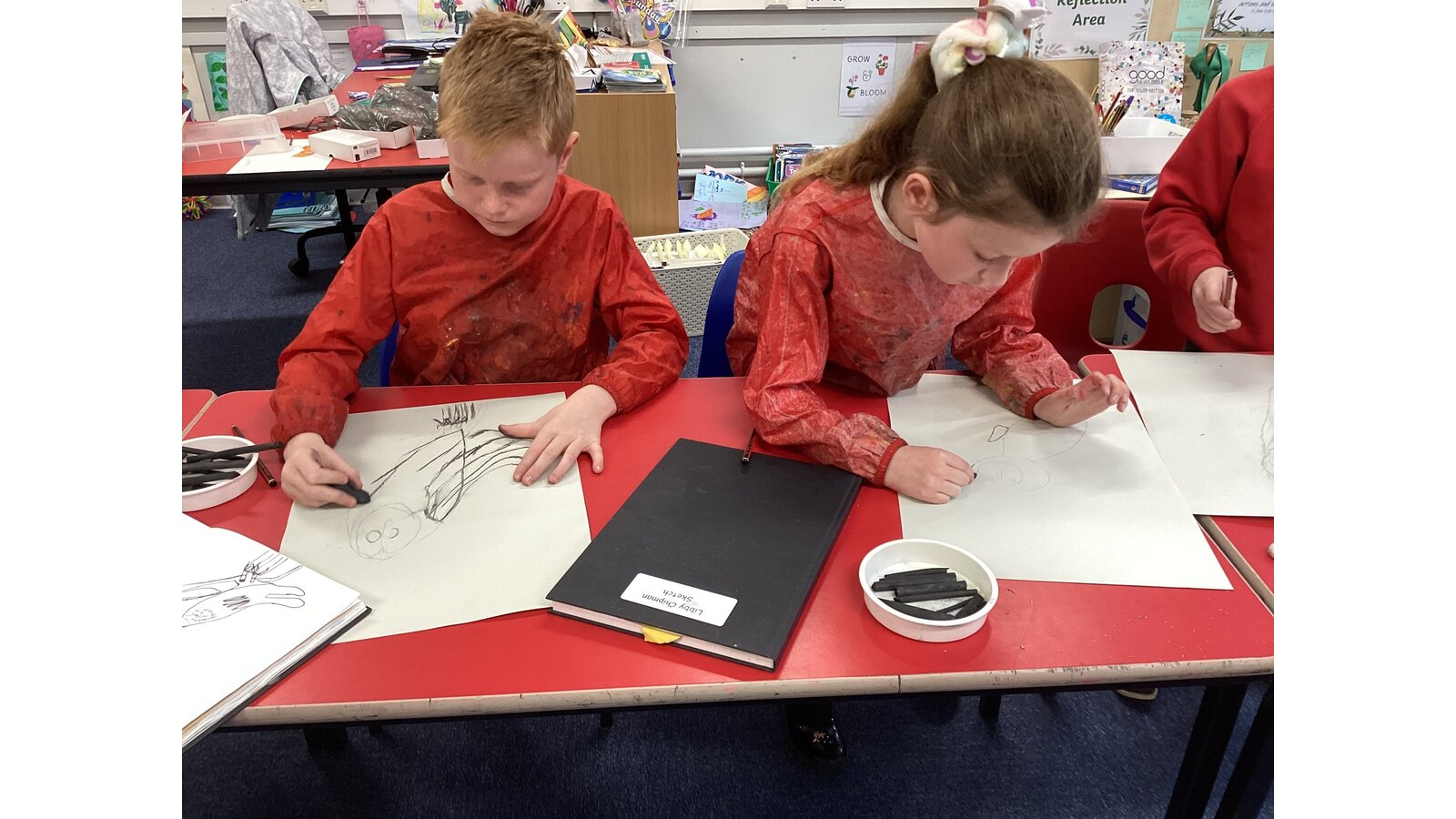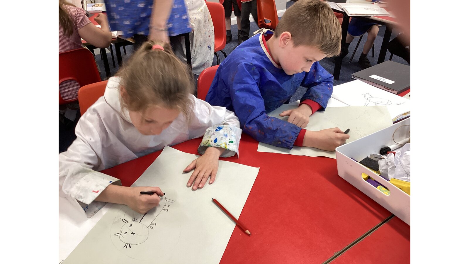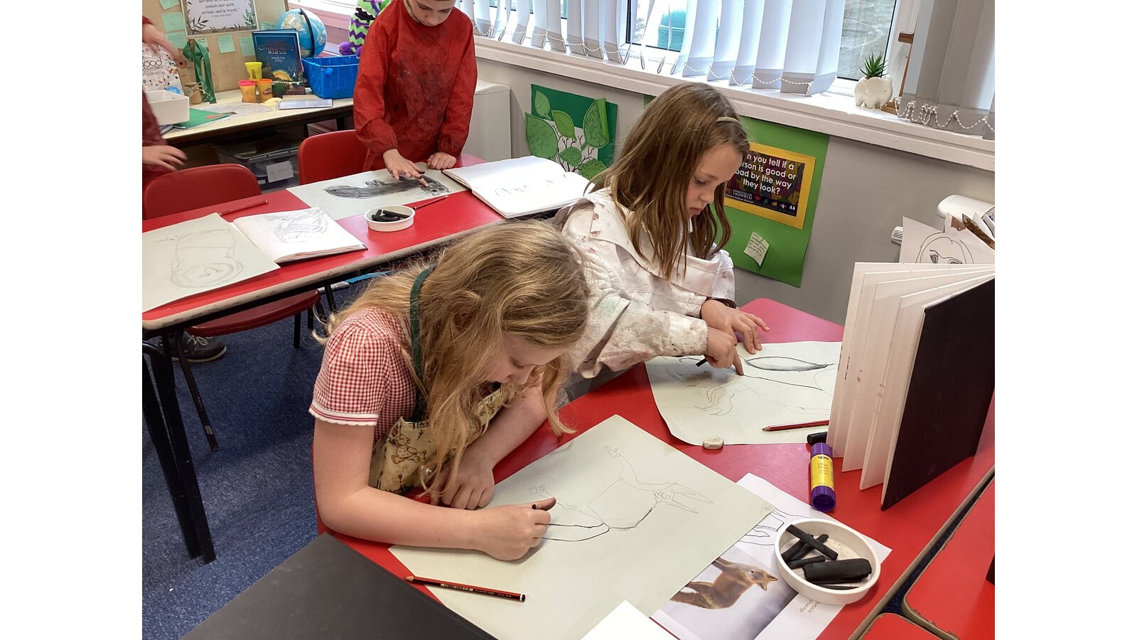 Class 2 sketched animals using charcoal.