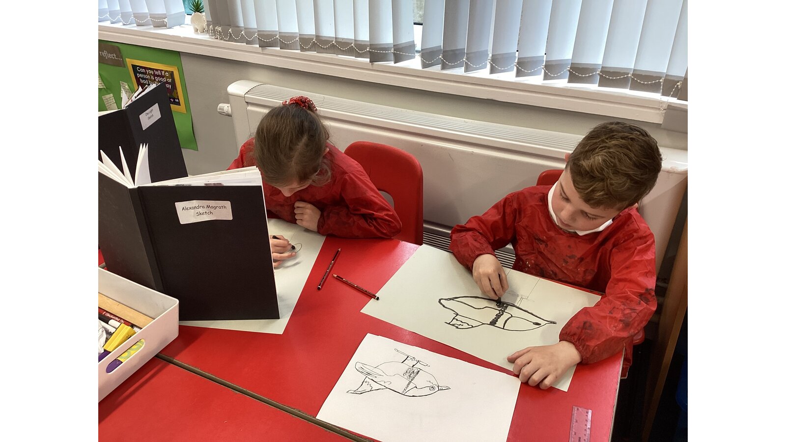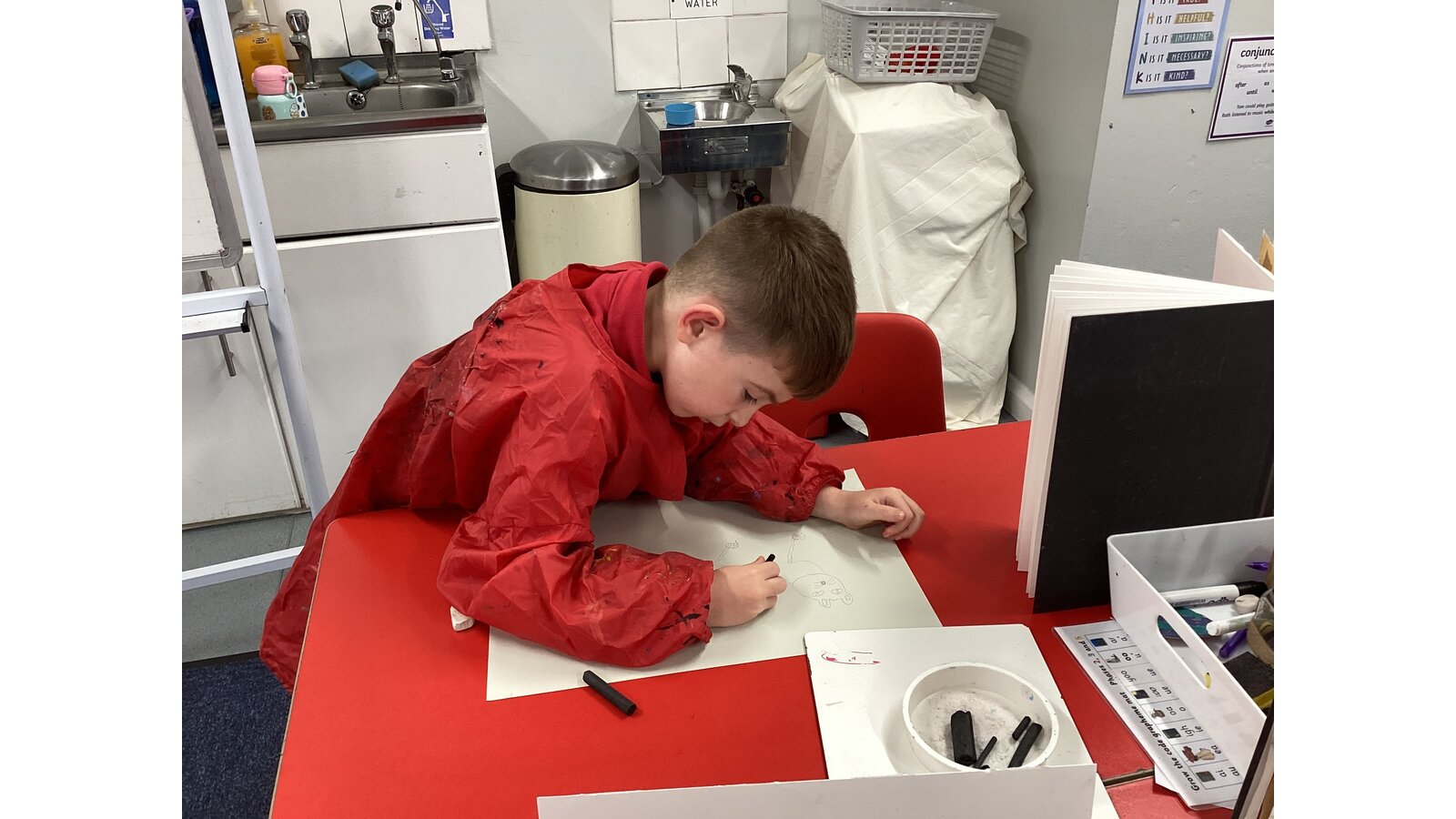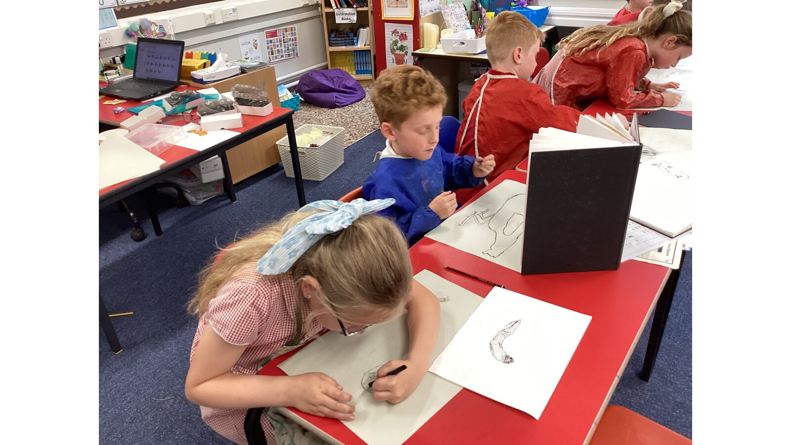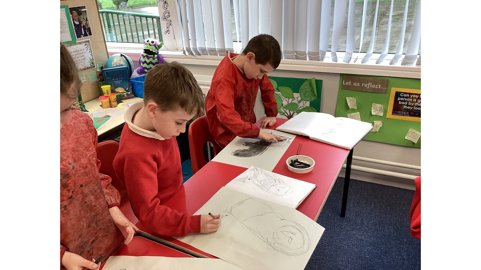 Class 2 sketched animals using charcoal.