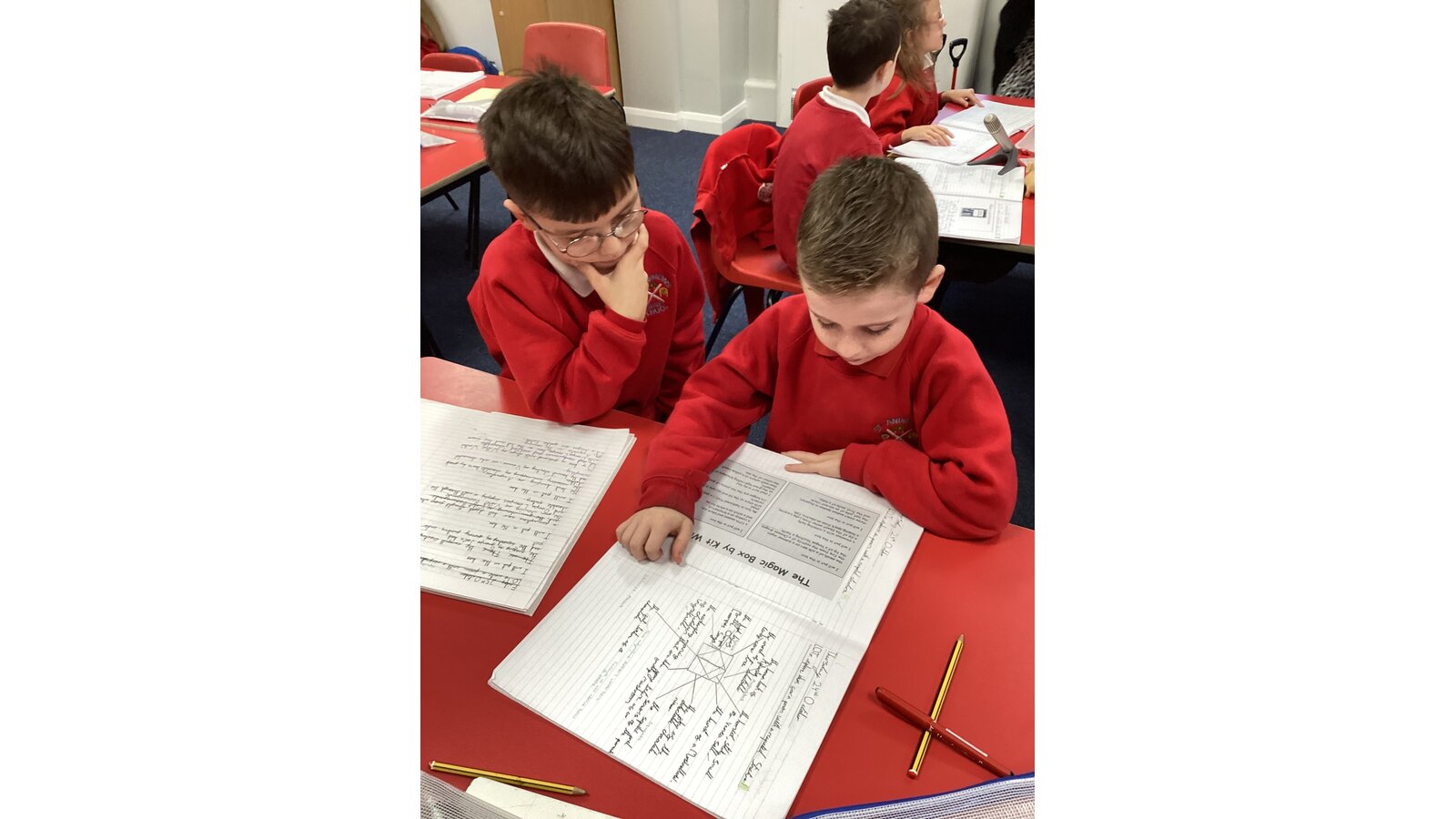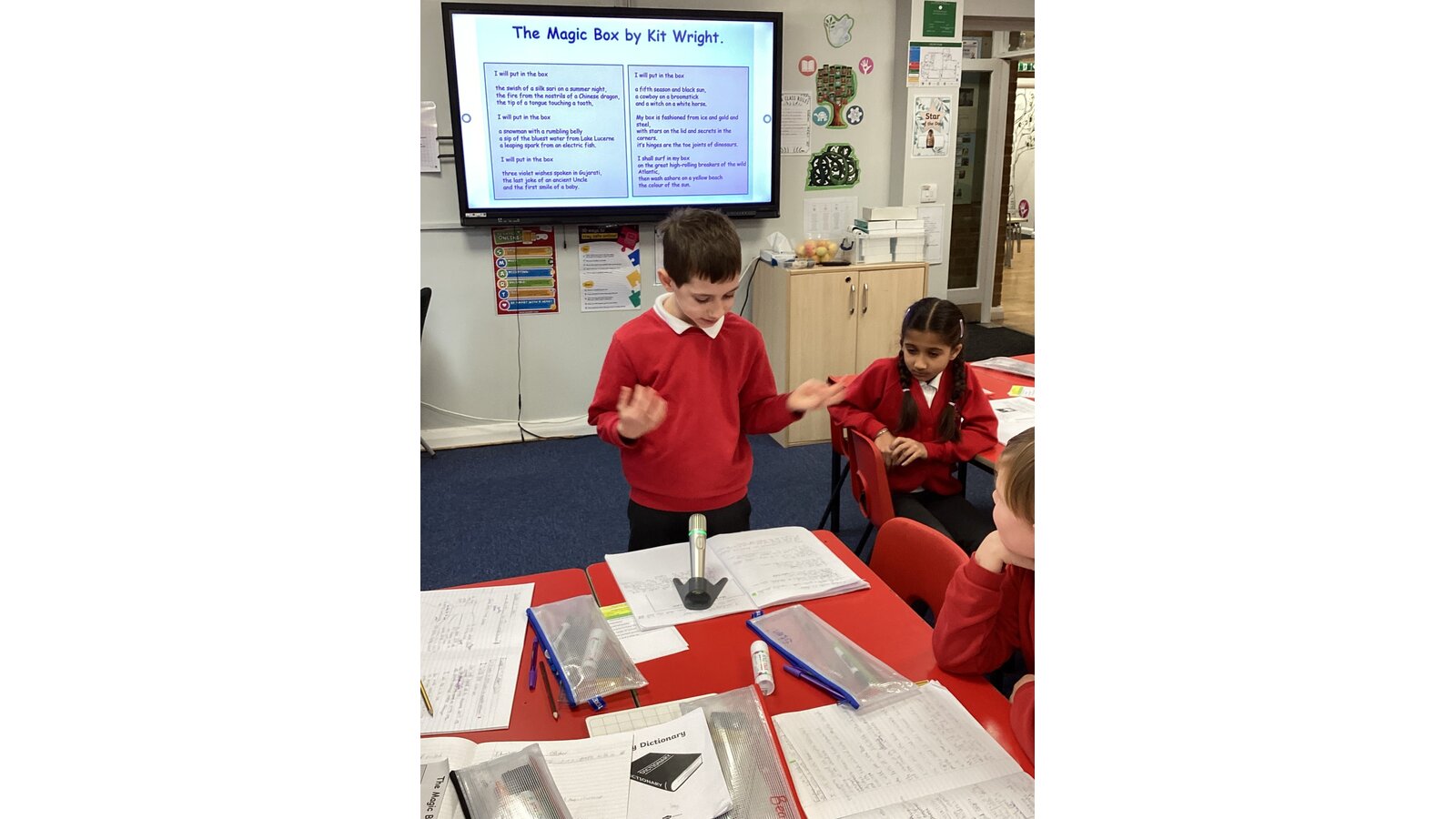 We have written poems based on ‘The Magic Box’ by Kit Wright. We included sights,smells and tastes from Charlie and the Chocolate Factory in our boxes. We then used our oracy skills to present our poems.