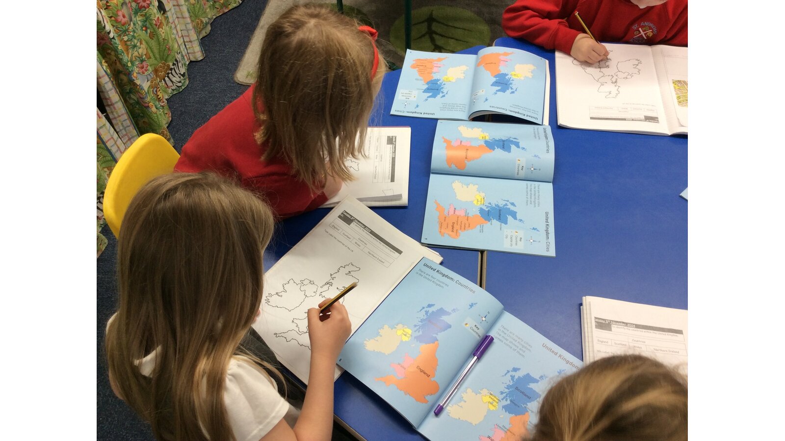 It was fantastic to see the children working together, sharing facts and developing their map skills. This activity helped them understand how to use an atlas to locate places and gave them a real sense of what makes each part of the UK special.
