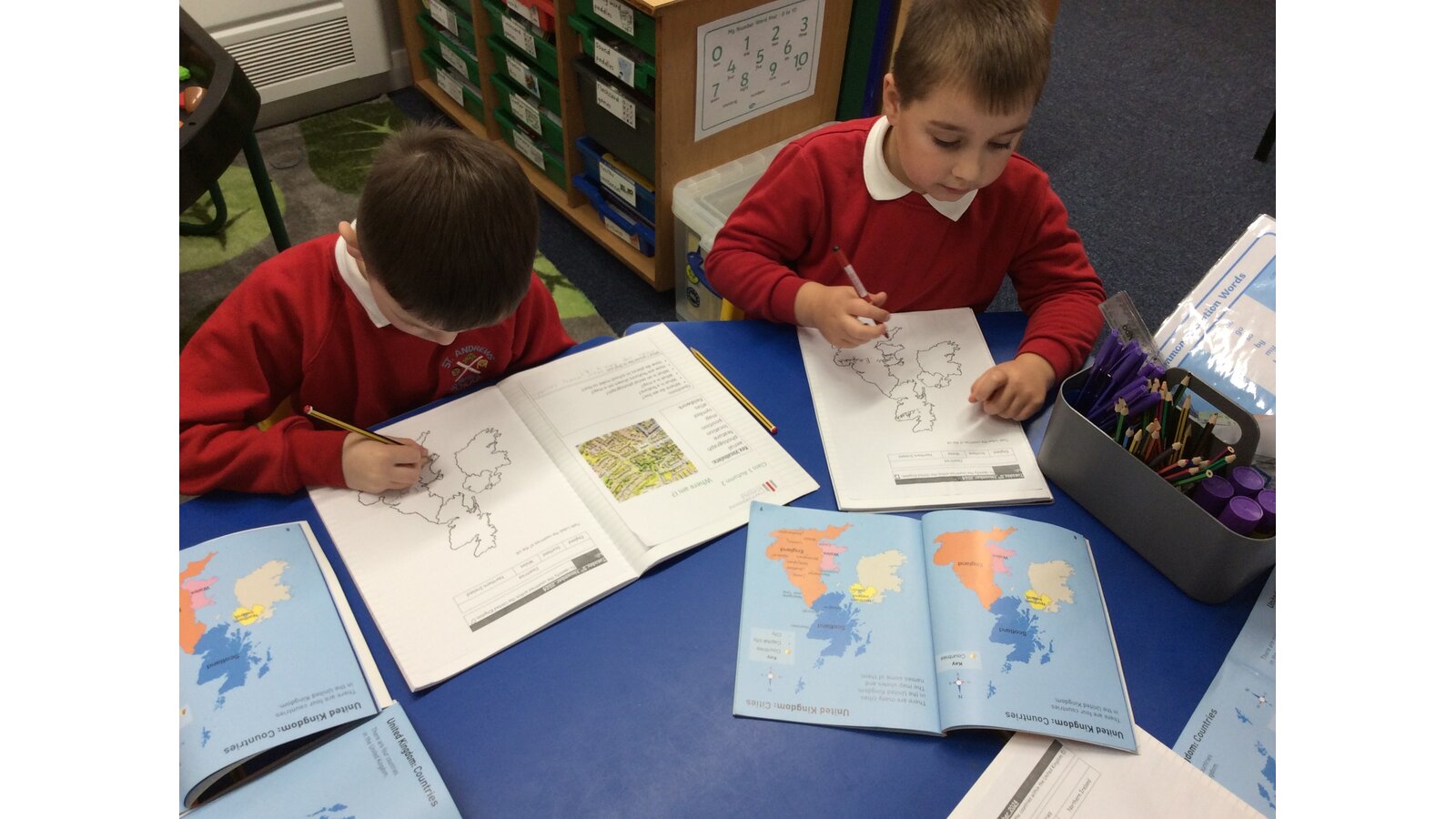 Today in our KS1 geography lesson, we went on an exciting journey across the United Kingdom - without leaving our classroom! Using atlases, our young geographers set out to discover more about the four countries that make up the UK: England, Scotland, Wales and Northern Ireland.