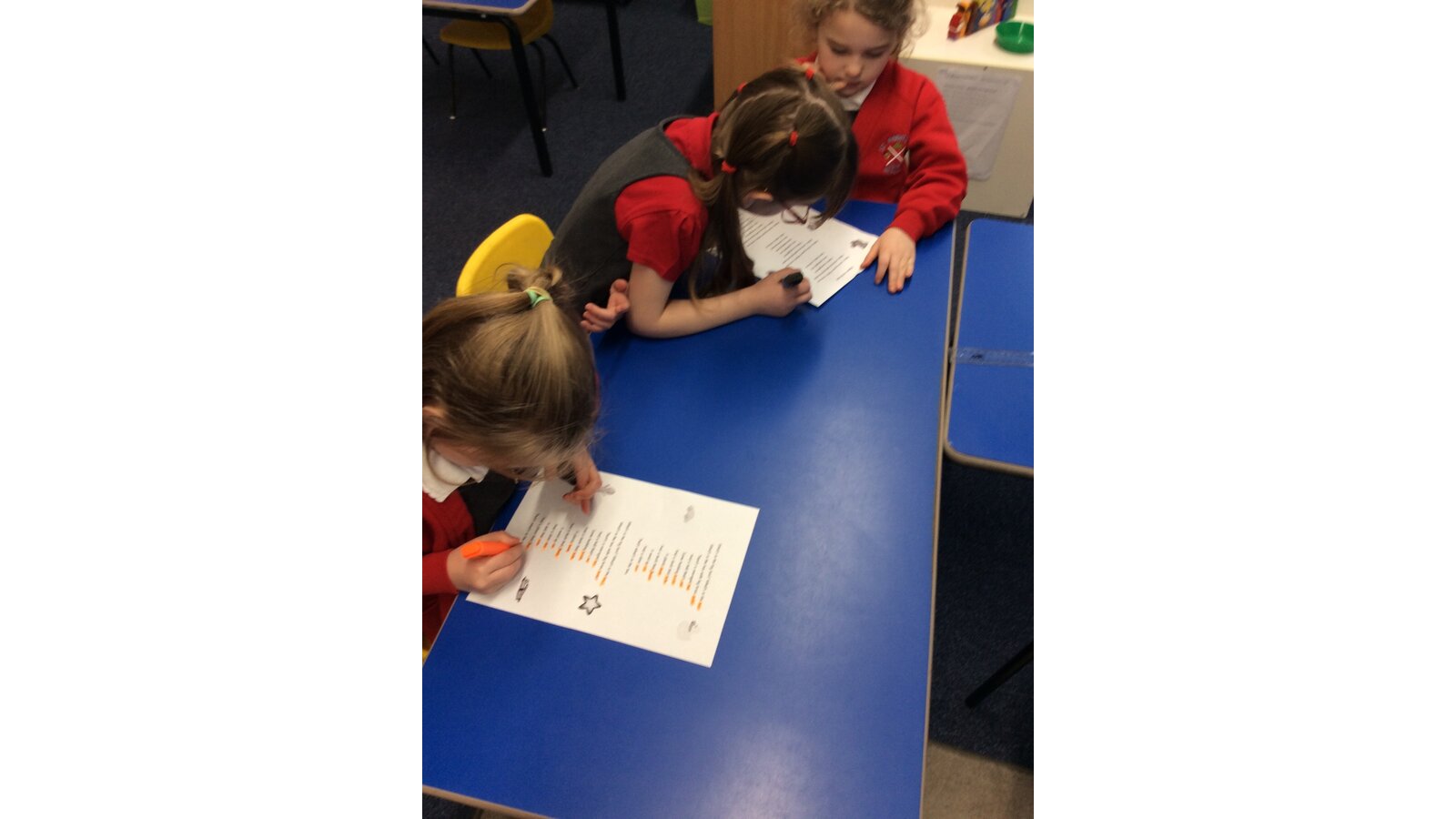 Today we listened to a poem called ‘What’s in the Box?’ and tried to hear and spot the pattern. We also learned about the rhyming elements in the poem and worked together to read, identify and highlight the words that rhyme. After learning the repeated rhyming structure of the poem we started thinking about how we could change the poem to ‘What’s in the Christmas Box?’ The children shared ideas for what they would want to find in their Christmas box on Christmas morning. They were then challenged to think of things that rhymed and add adjectives and expanded noun phrases to their Christmas items.