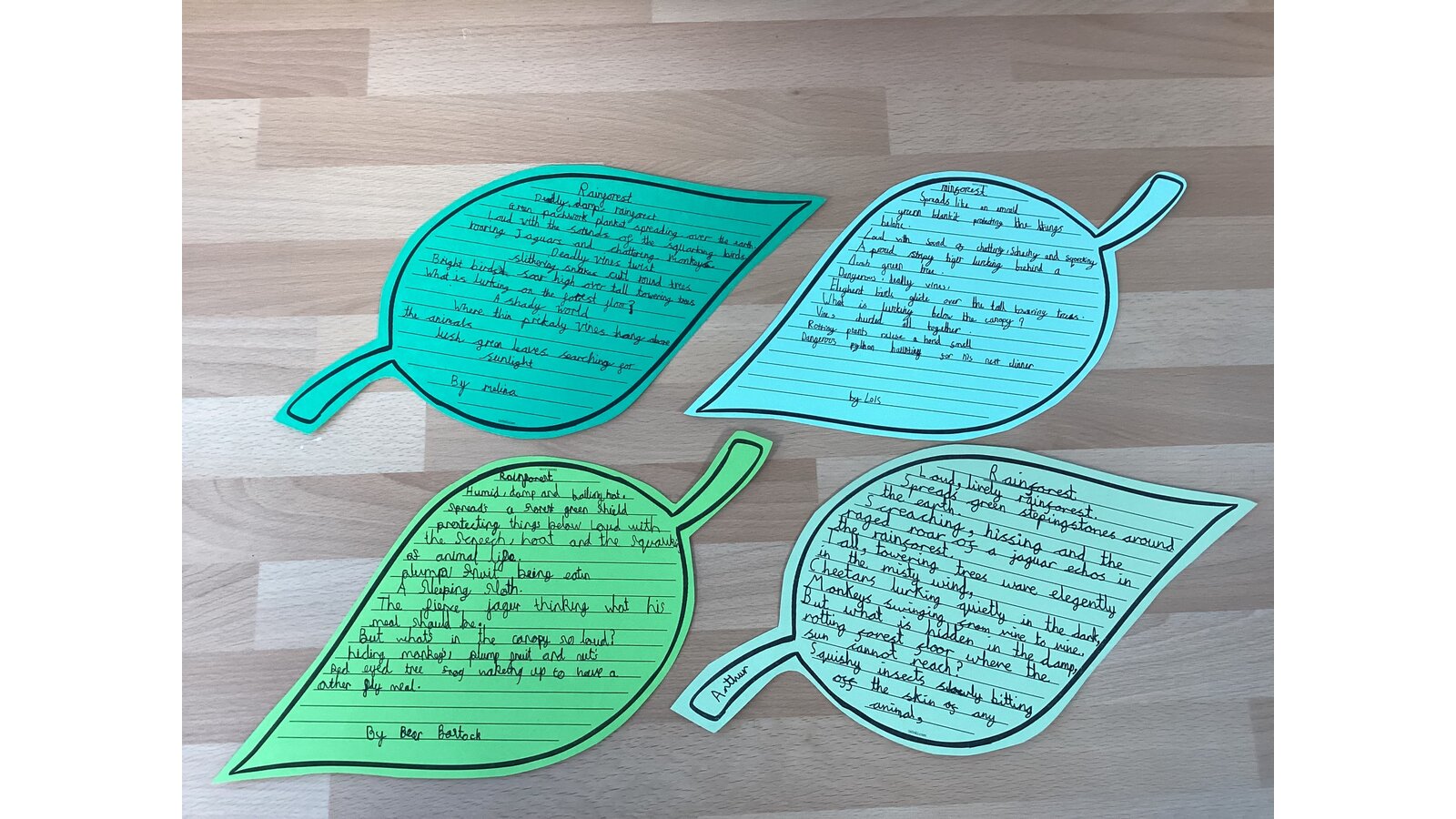 This week we have created poems about the rainforest. We have used our knowledge from our Geography topic and from reading the story ‘The Great Kapok Tree’ to help us with our ideas.