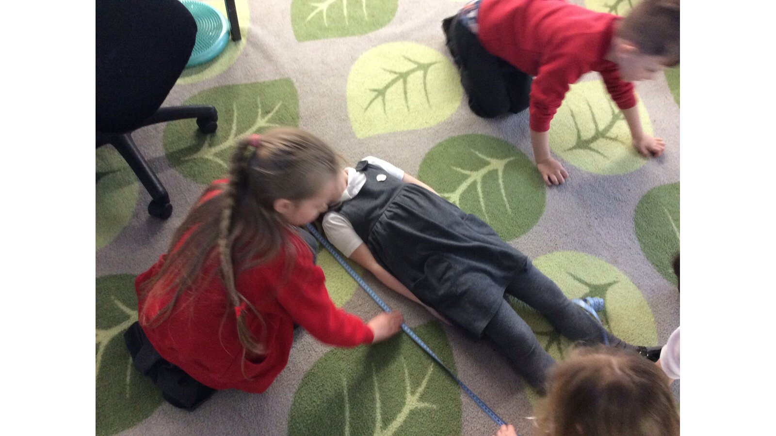 Working in teams, each child had an important role - holding the tape measure steady, recording results on a whiteboard, and, of course, lying still to be measured! We compared heights across EYFS, Year 1 and Year 2, looking for patterns in how we grow.