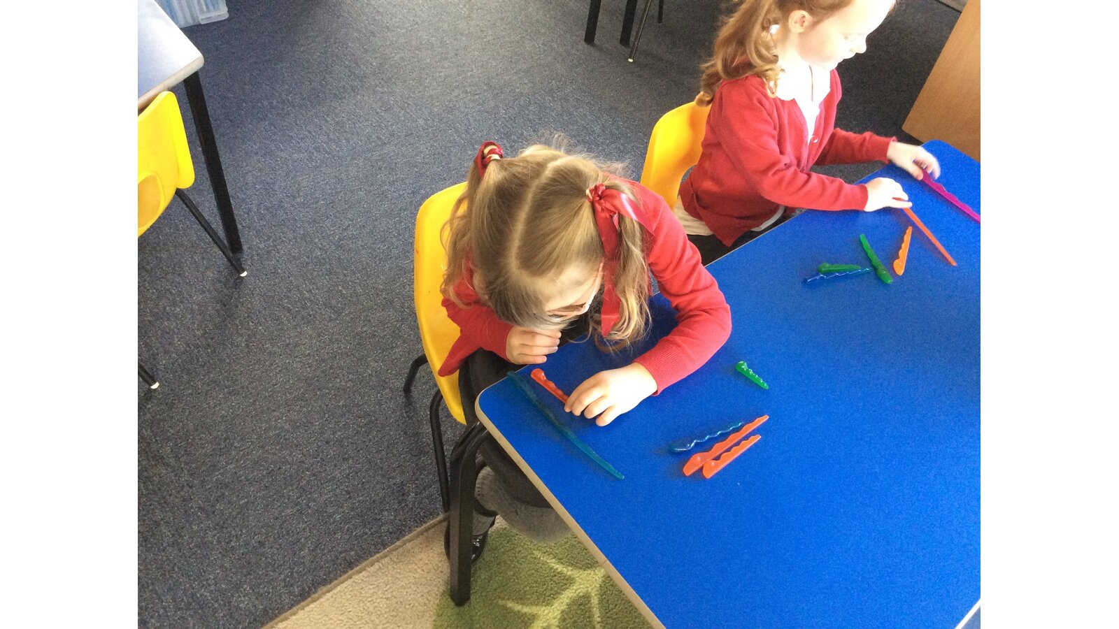 Next, the children explored length by sorting objects around the classroom into shorter and longer hoops. They then put their measuring skills to the test by carefully ordering snakes of different lengths - making sure to line them up at the same starting point so their comparisons were fair!