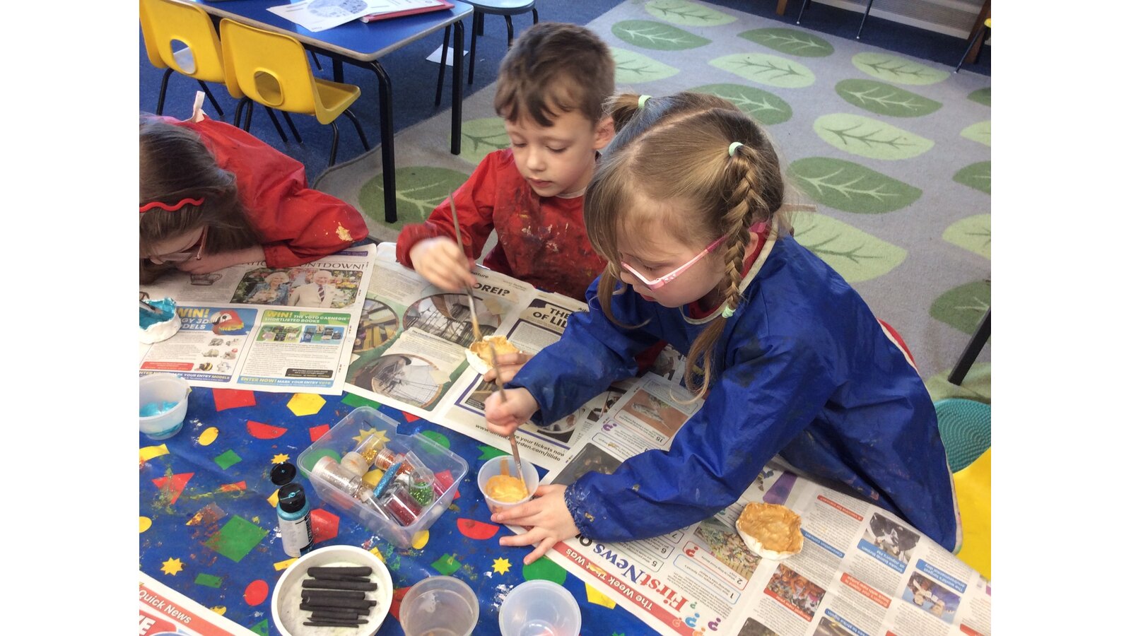 Using Clay, the children carefully shaped pinch pots, turning them into lovely trinket dishes. Once dried, they decorated them with metallic paint and a touch of glitter, making each one unique and special.