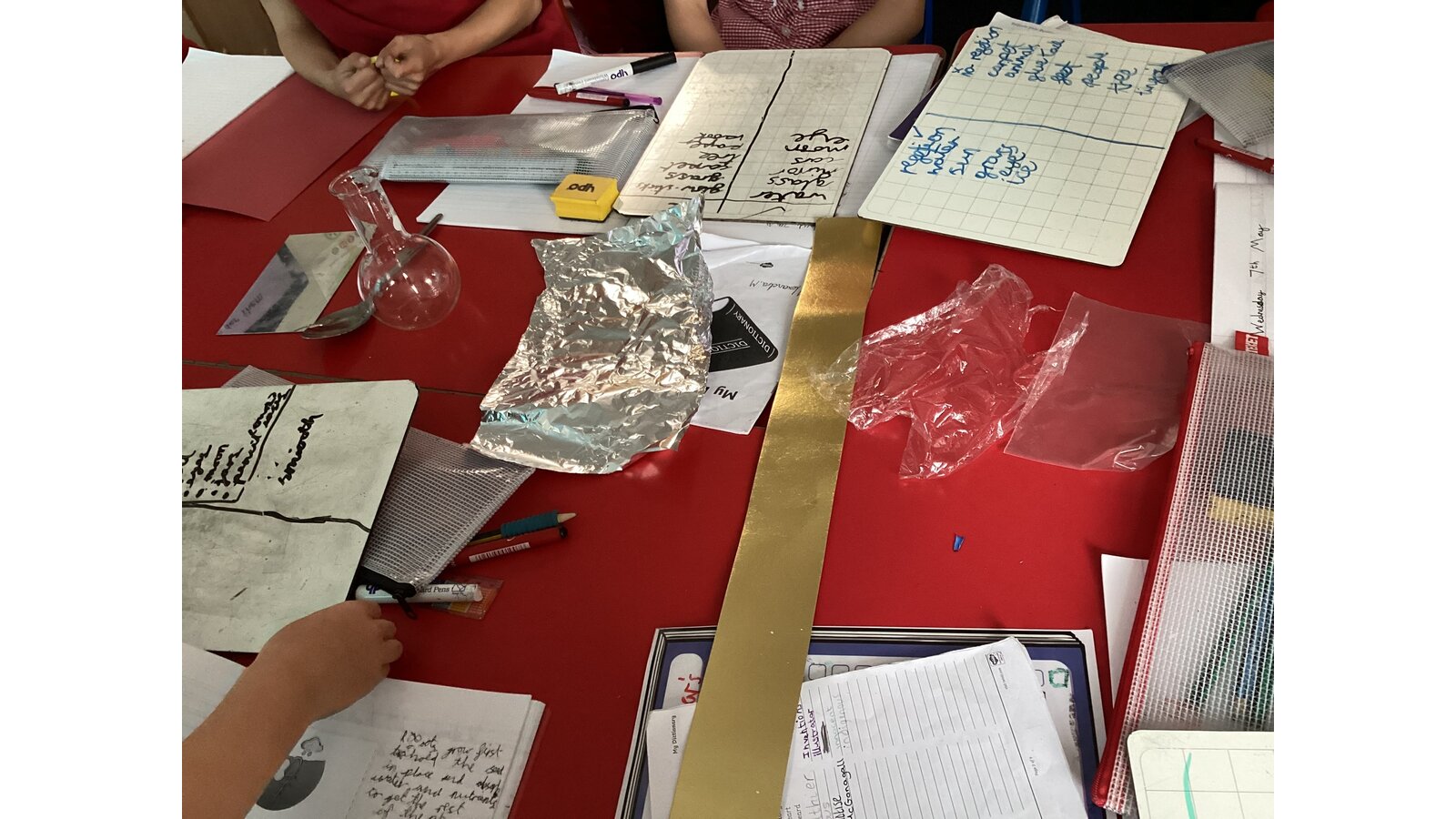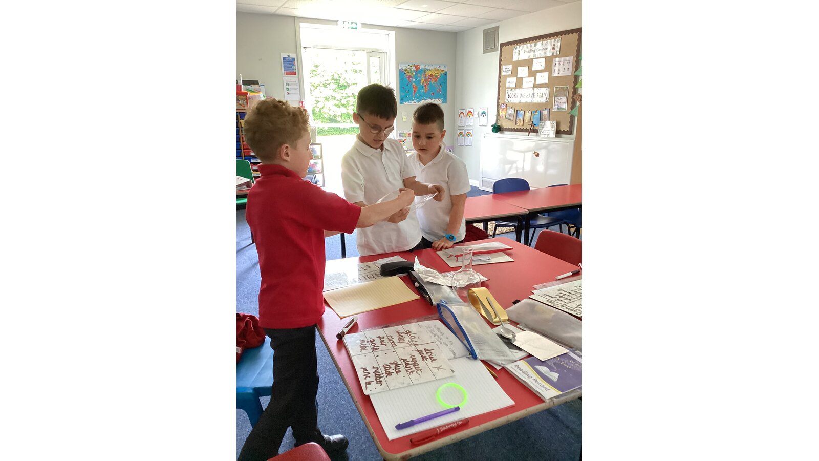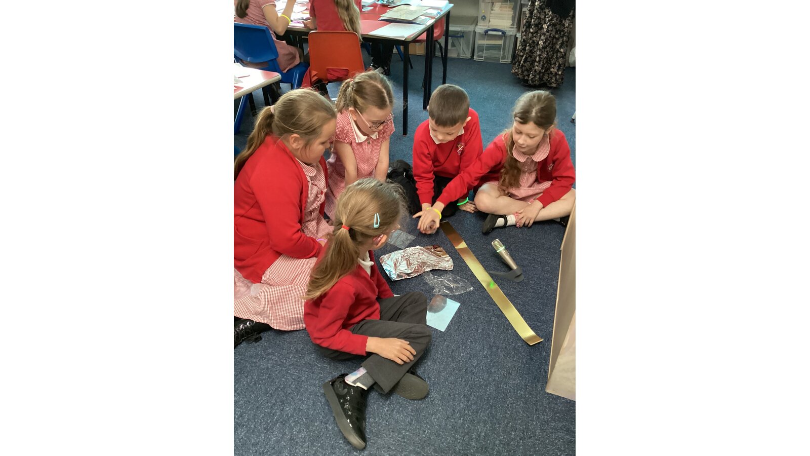 In science we have been learning about light. We have discovered that our eyes are not light sources so without light we wouldn’t be able to see. We tested this by covering our eyes with a black hat. We couldn’t see a thing!