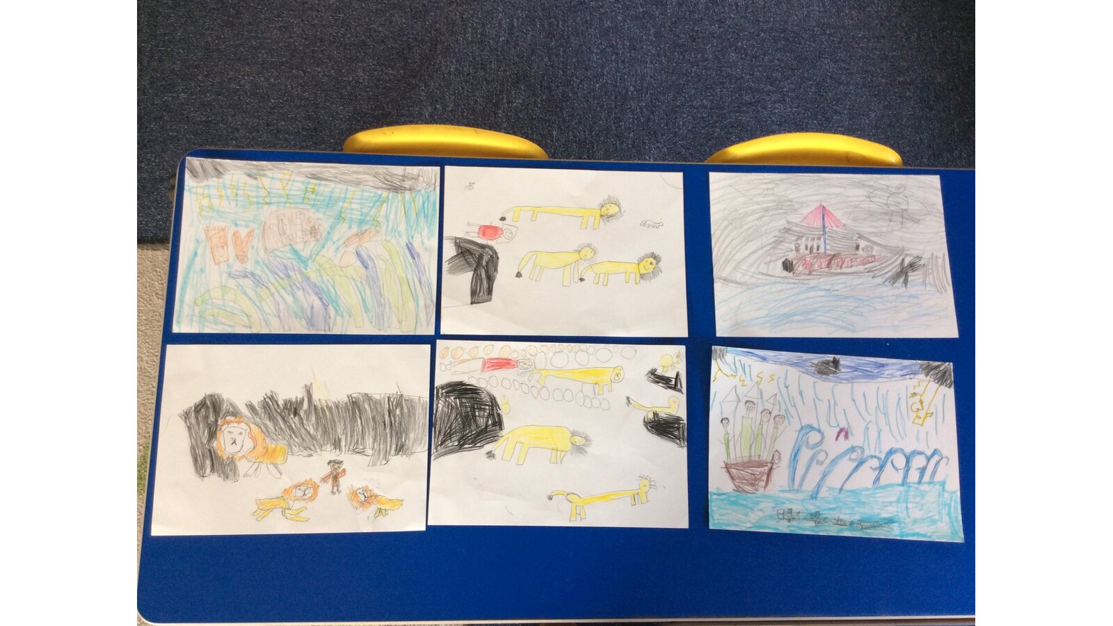 KS1 children chose the story Jesus Calms the Storm. After listening carefully and reflecting on the meaning, they created stunning artwork to show the moment Jesus brought peace to the frightened disciples in the boat. The children shared thoughtful reflections, saying things like: