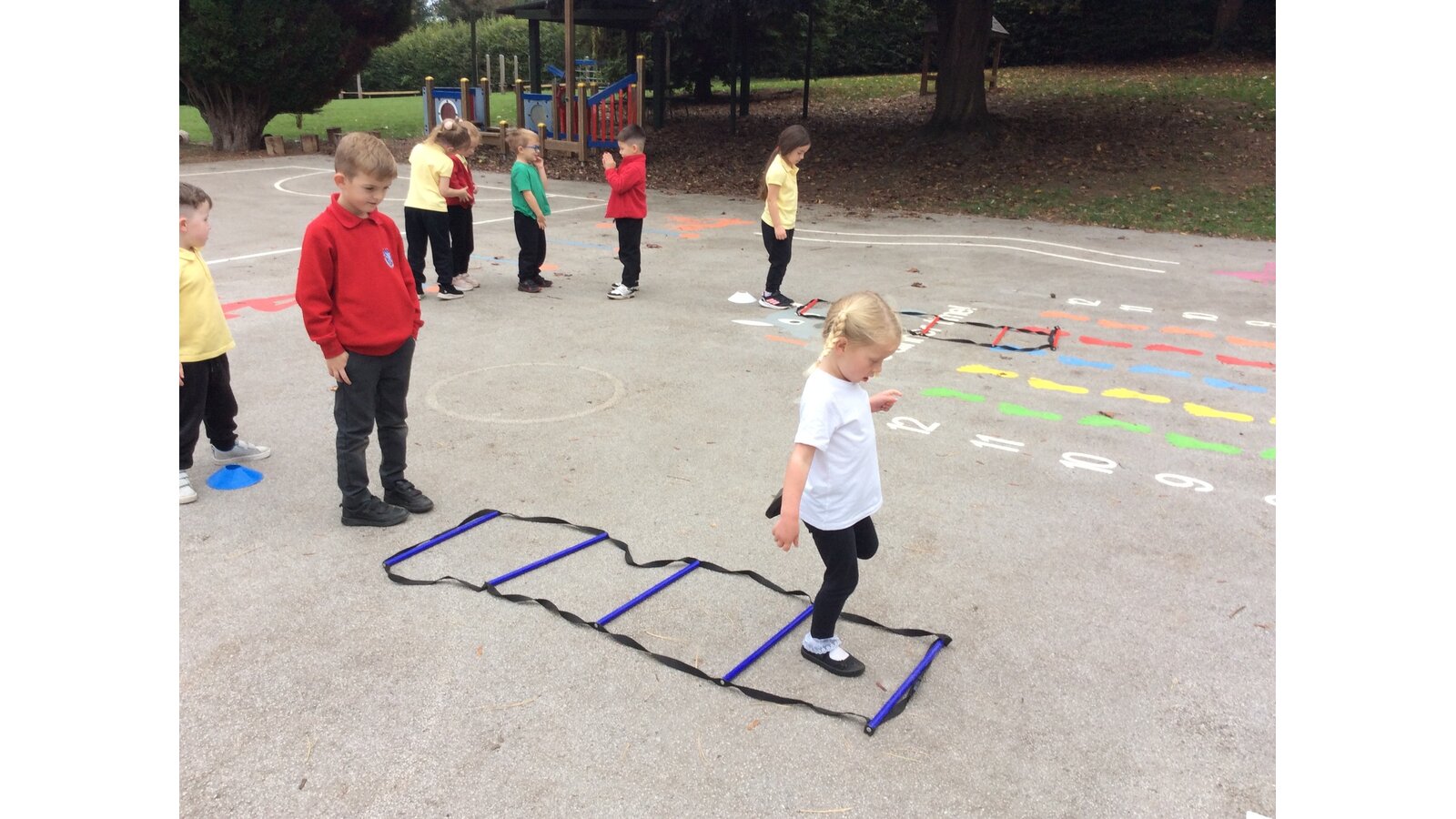 After warming up our bodies, we moved on to using floor ladders to practise jumping into spaces with precision. The children loved the challenge of jumping in and out of the ladder rungs, focusing on timing, coordination, and control. It was great to see them encouraging one another and trying their best!
