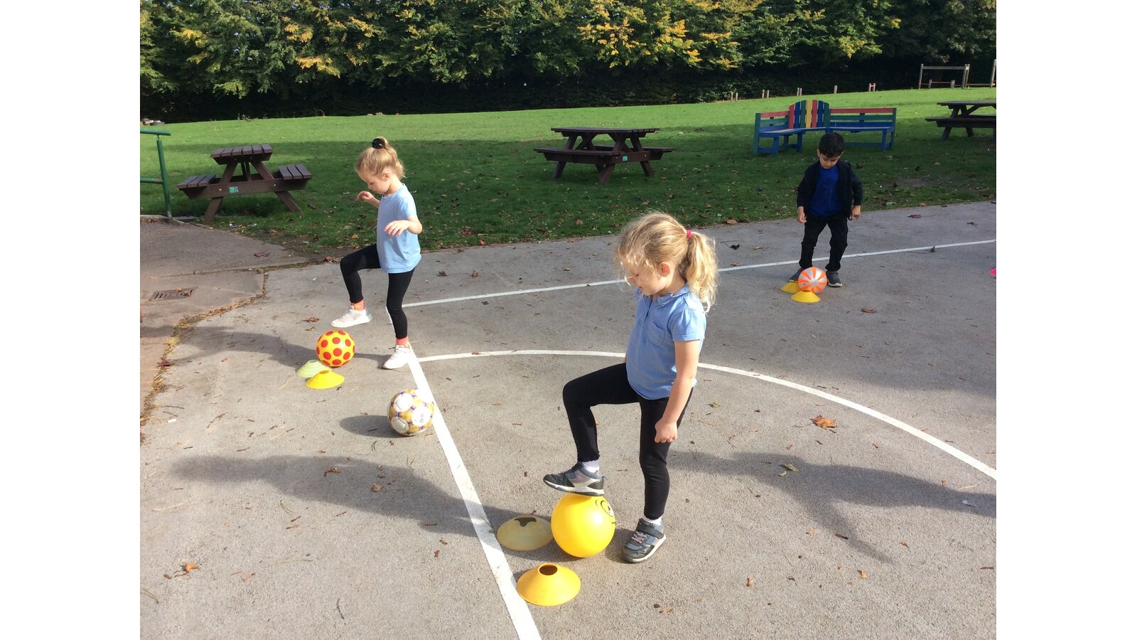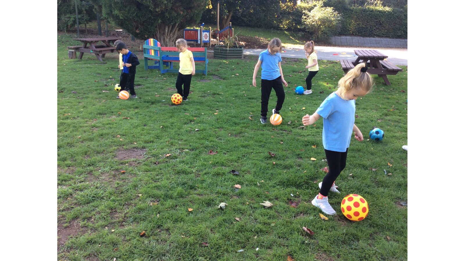 We started our lesson with some warm-up games to get our bodies moving and ready for action, before practising how to move the ball carefully around cones, through spaces, and even around each other! The children focused on keeping the ball close and using gentle touches to stay in control — it took lots of concentration and coordination!
