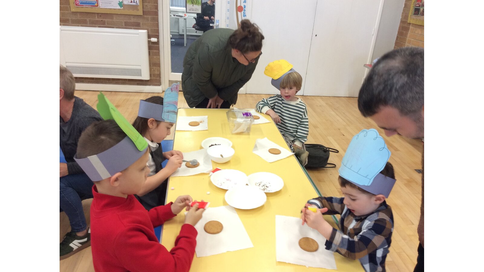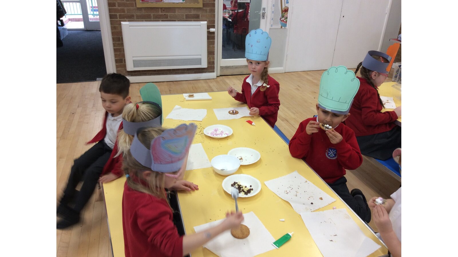 The children decorated their own cupcakes and biscuits using icing, sprinkles, marshmallows, chocolate chips, and colourful icing pens — and even made their very own chef’s hats to wear!