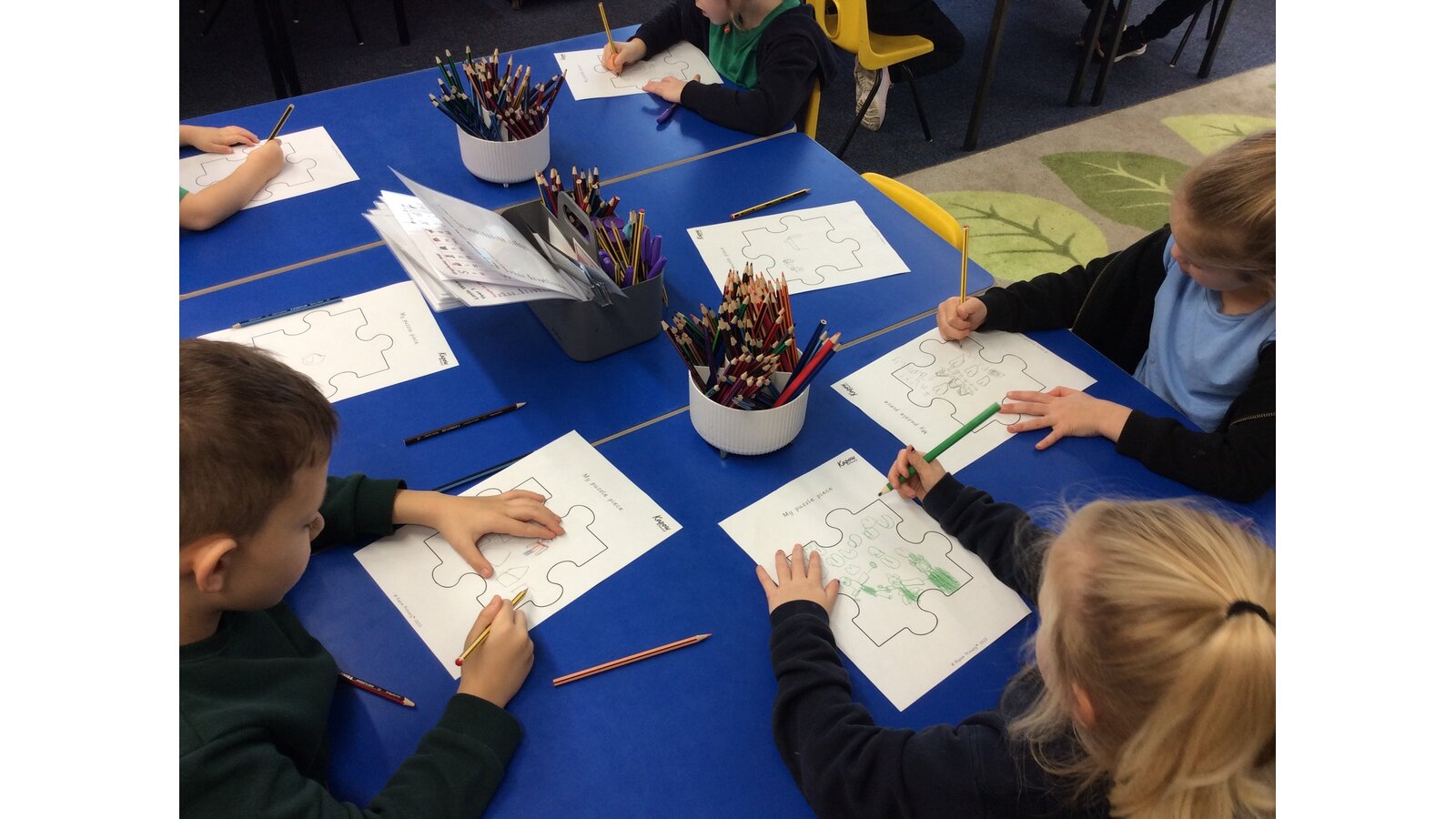 Before lunch, we headed outside for some fun team games, following Steel’s advice that keeping active helps us stay healthy and happy. In the afternoon, we enjoyed some mindful colouring and created our own ‘All About Me’ jigsaw pieces to show what makes each of us special and unique. We then had lots of fun guessing whose jigsaw belonged to who!